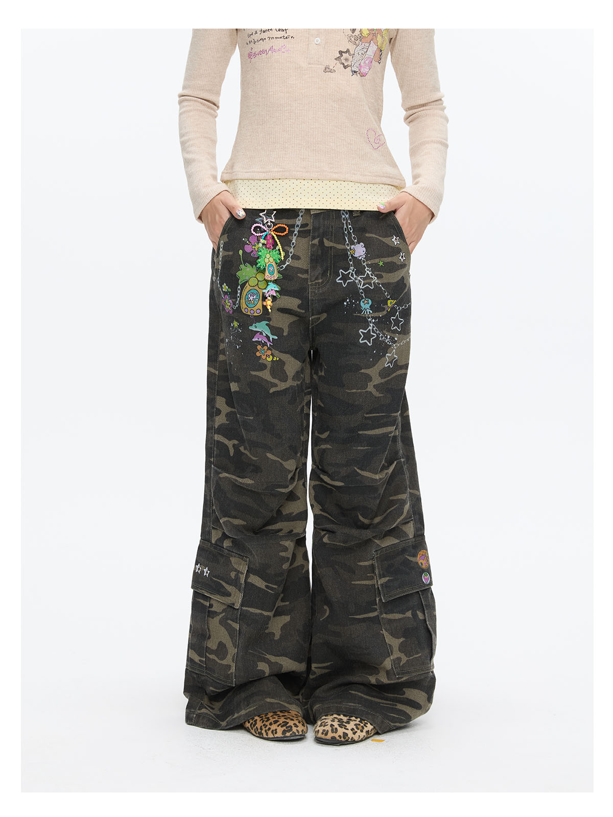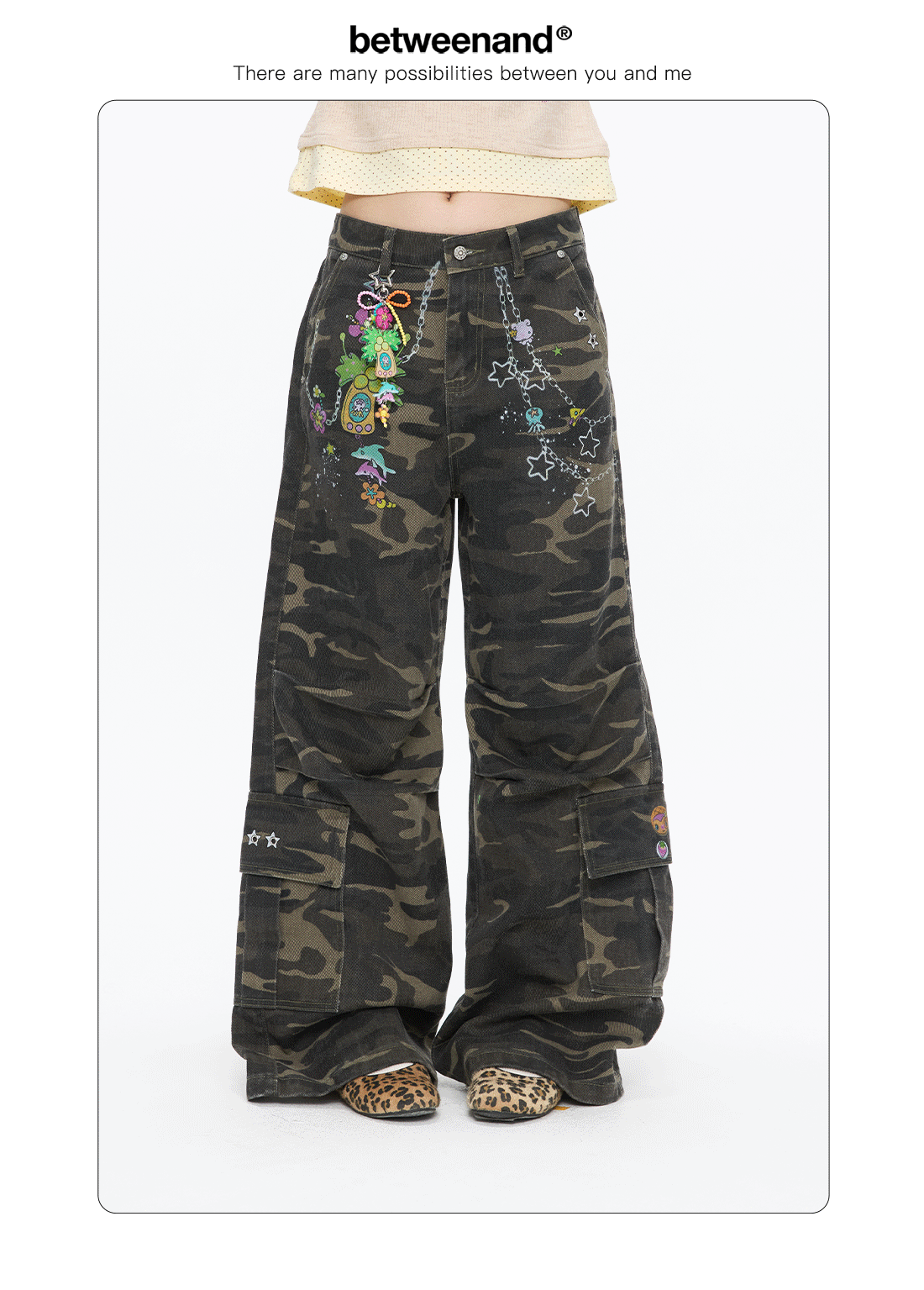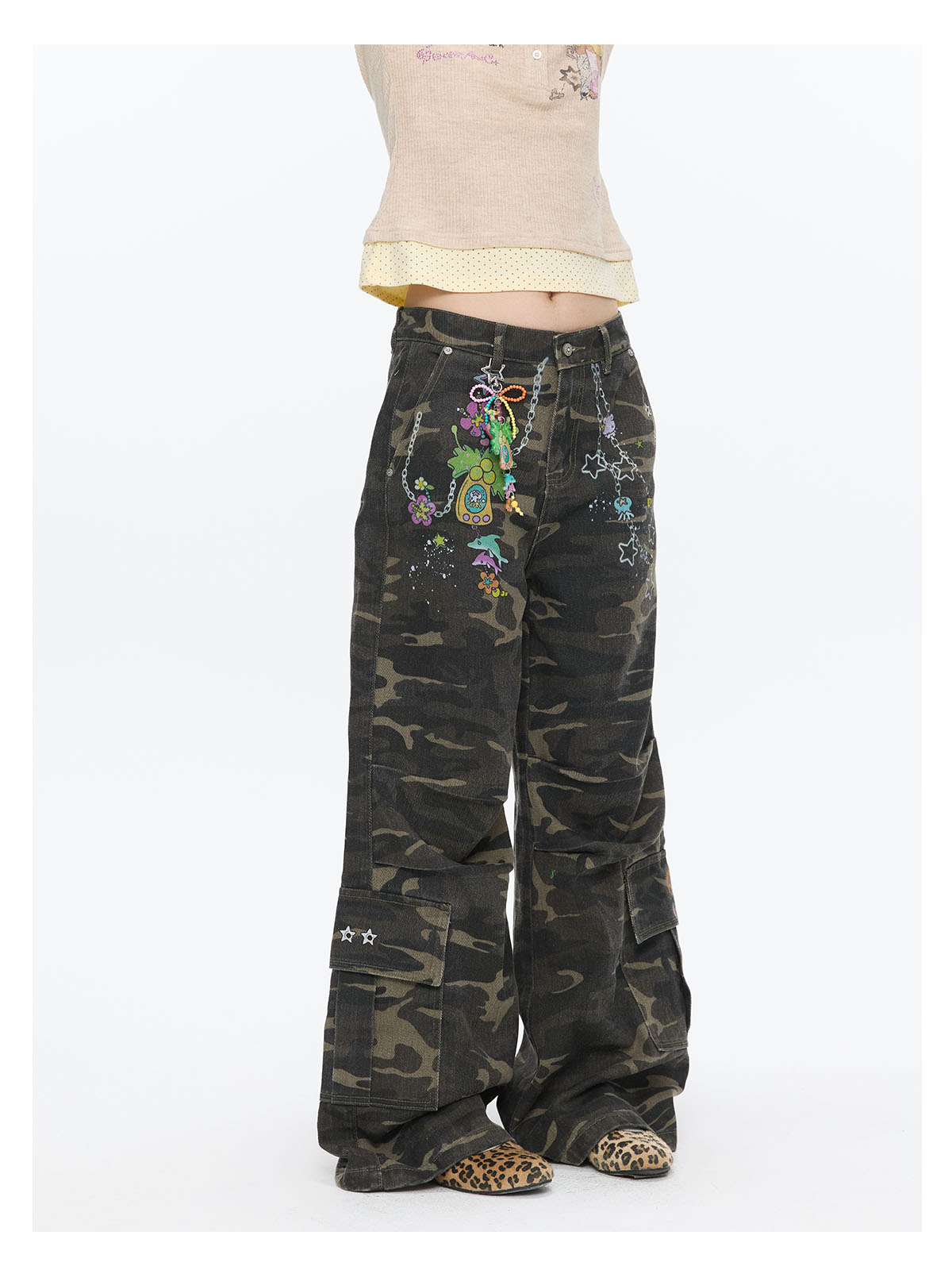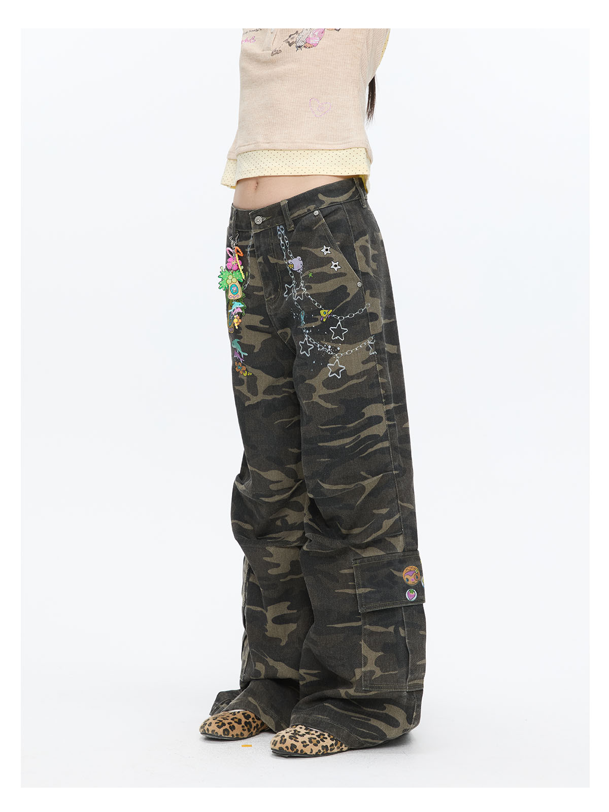 Vintage camouflage cargo pants with straight leg design Lookbook