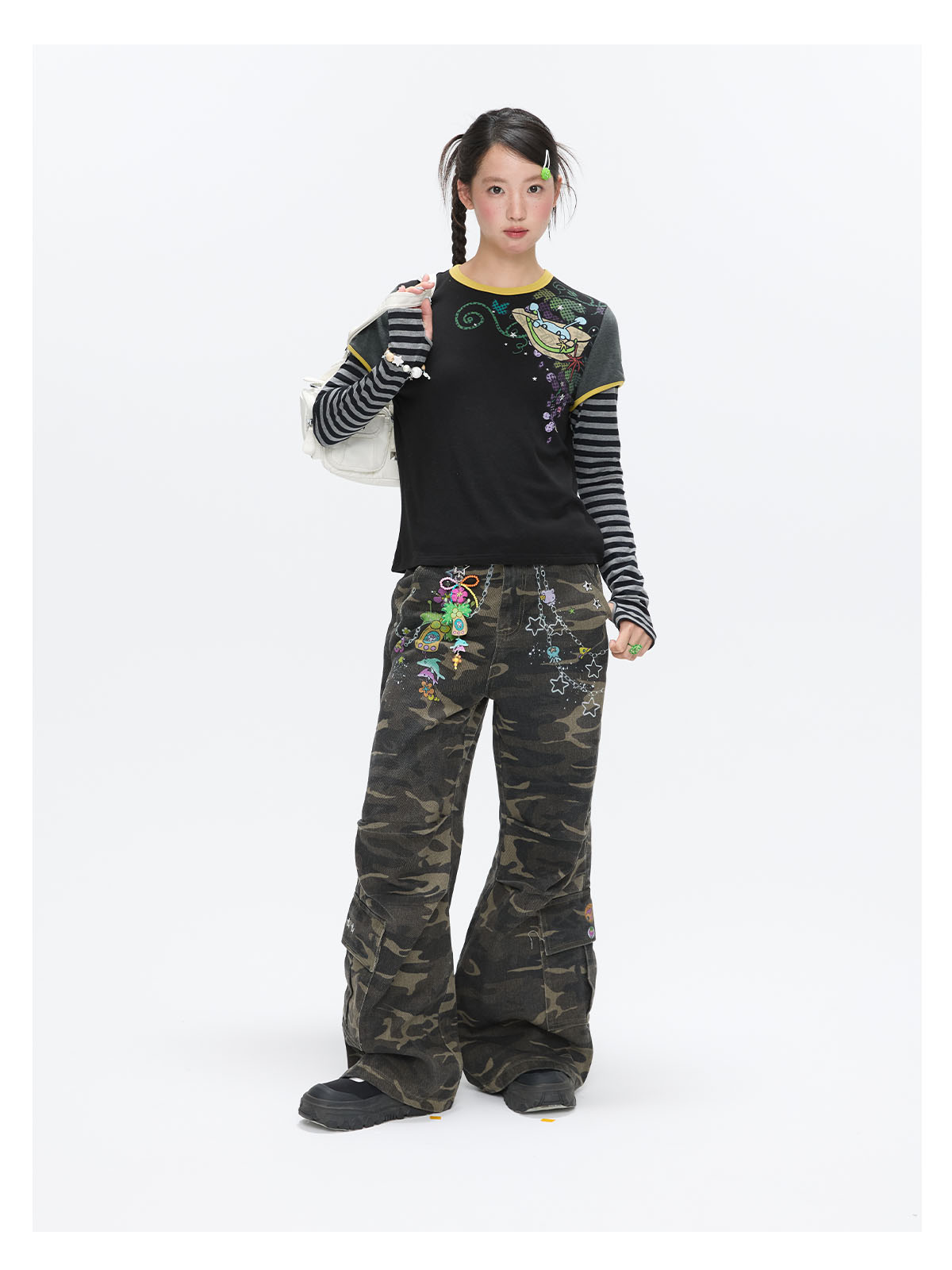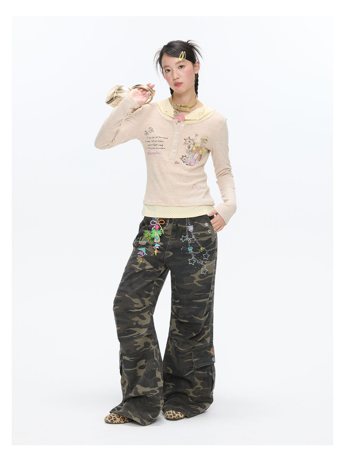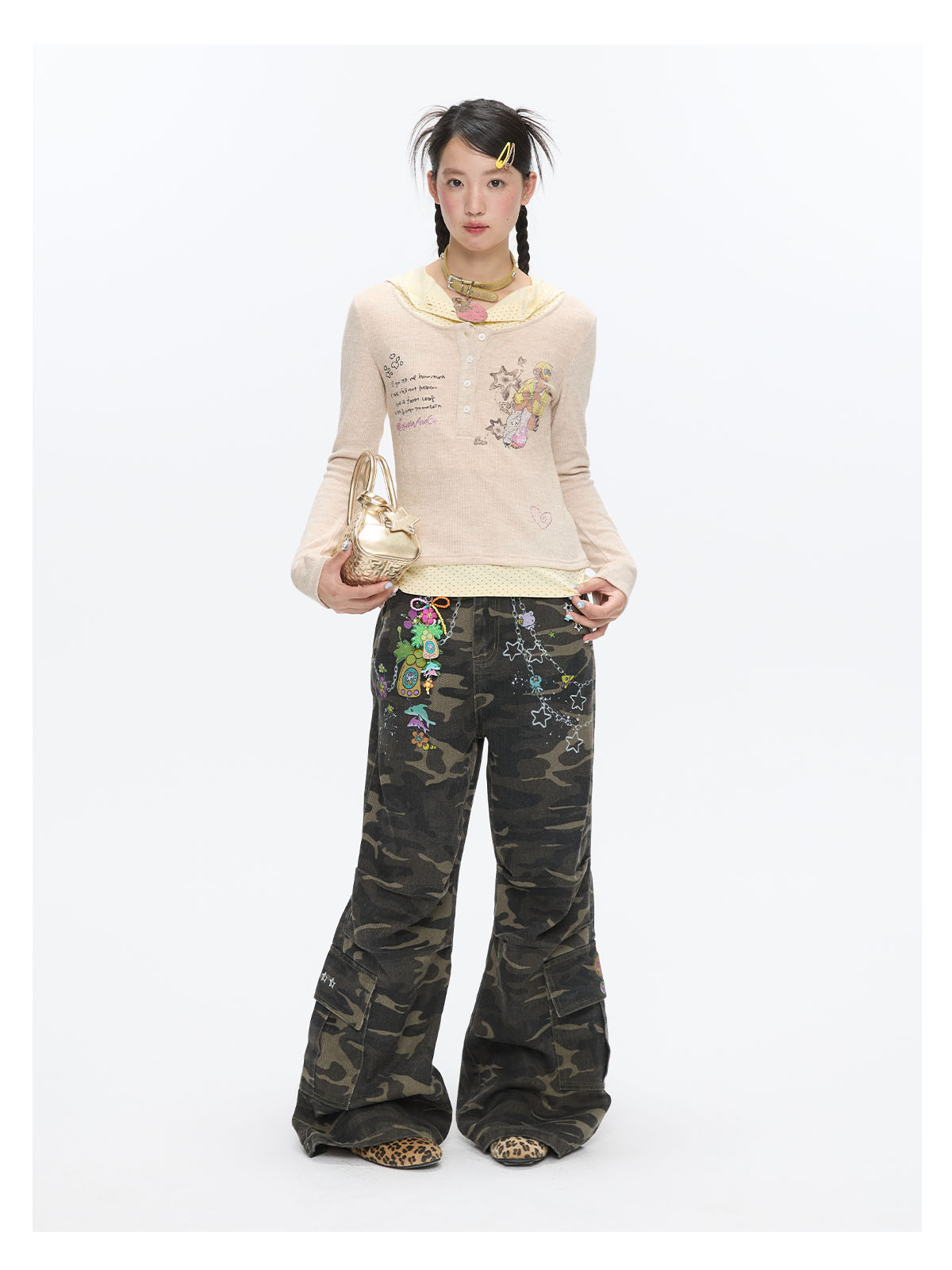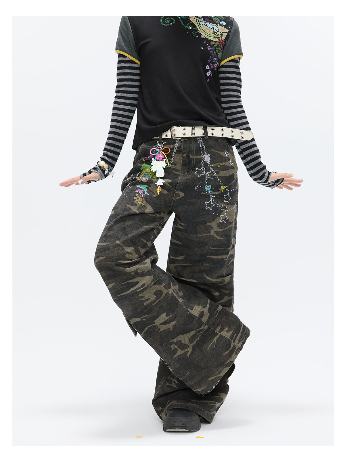 Vintage camouflage cargo pants with straight leg design Lookbook