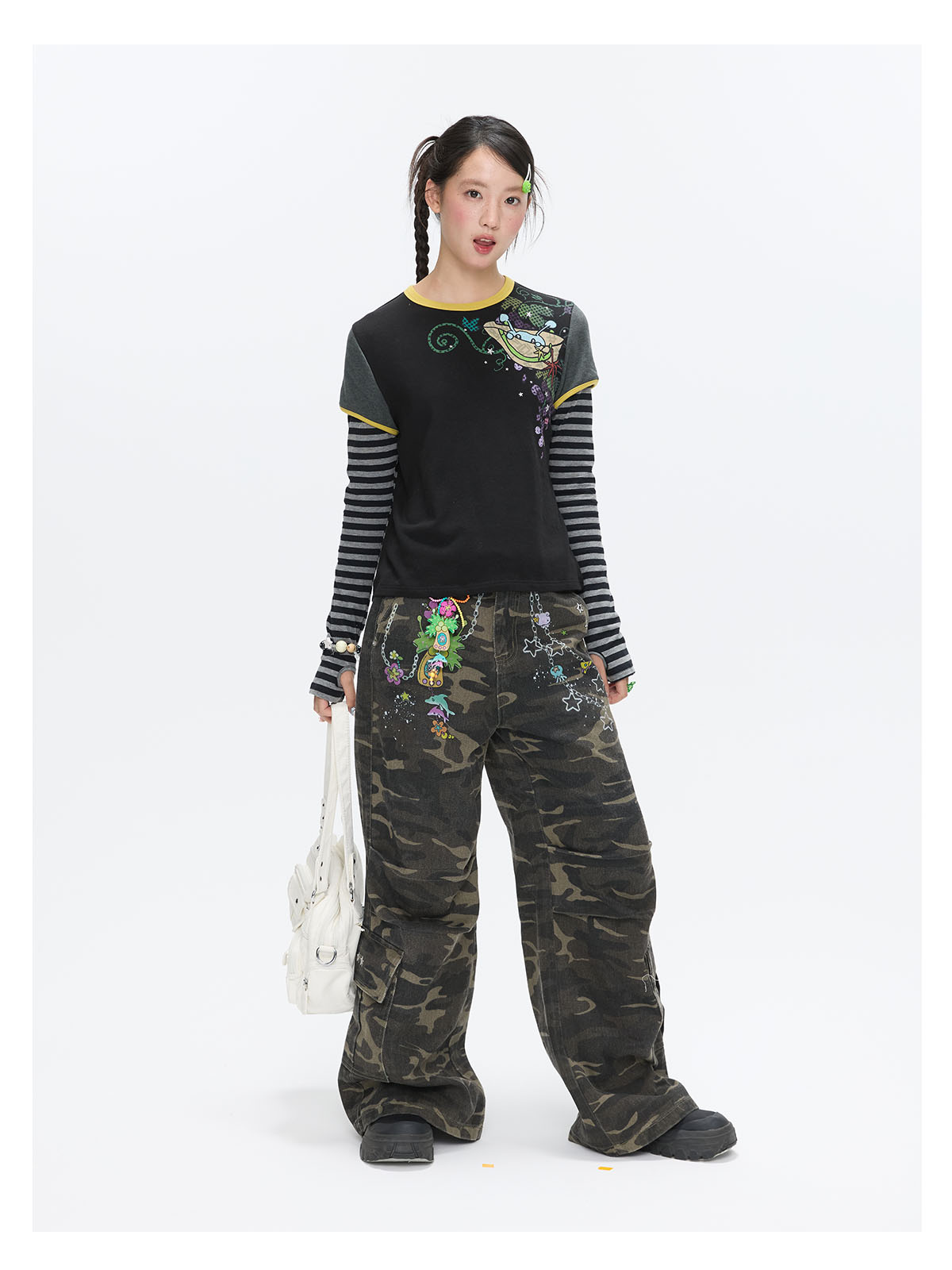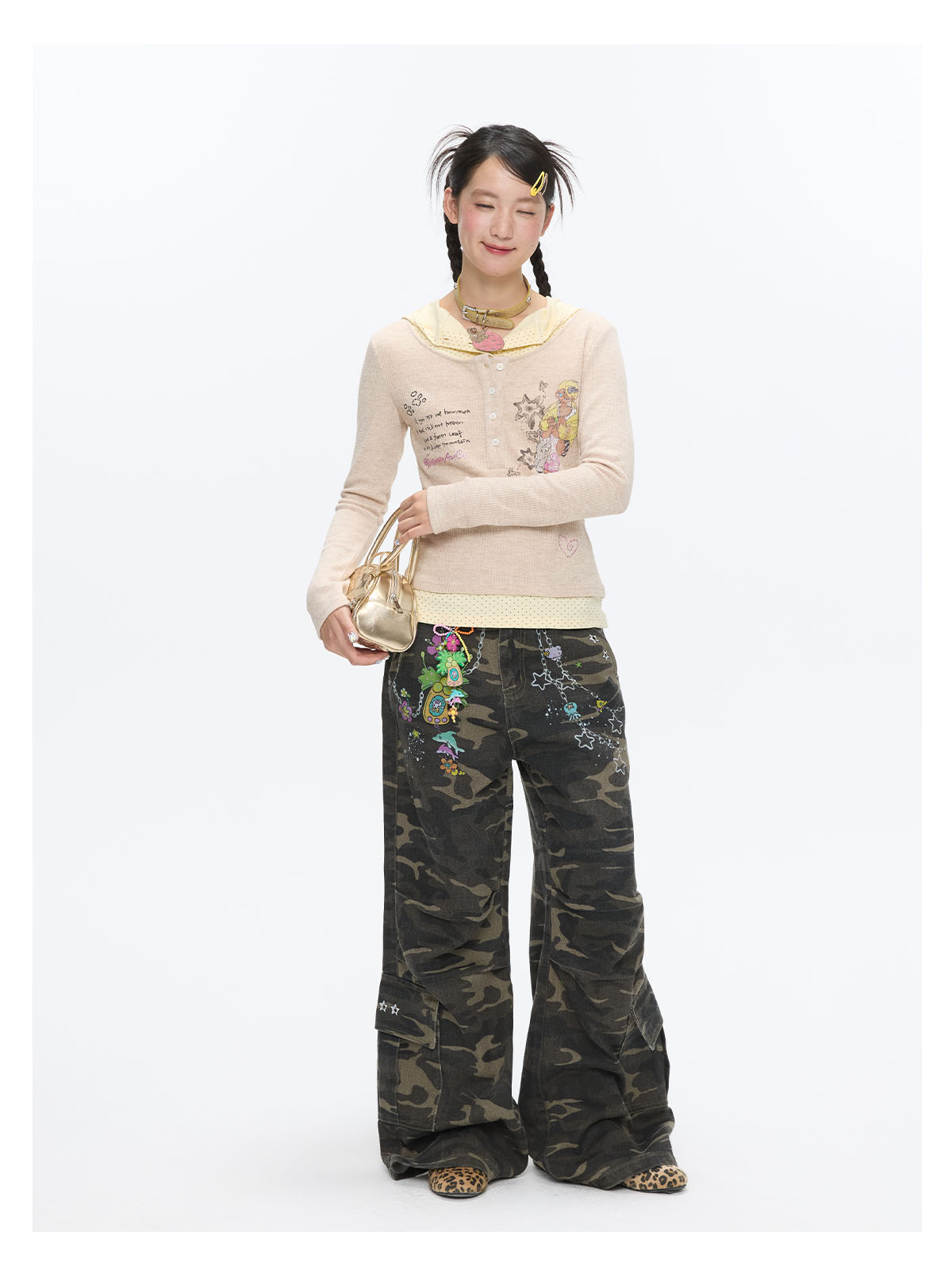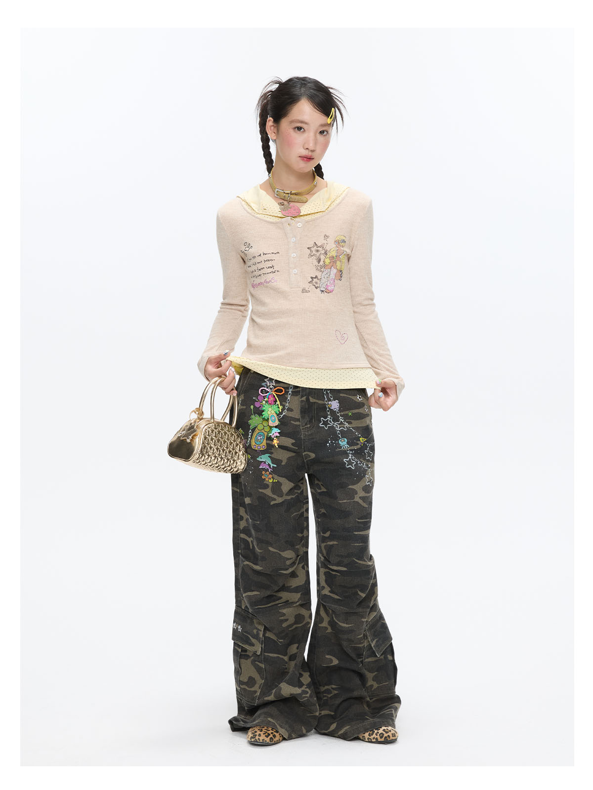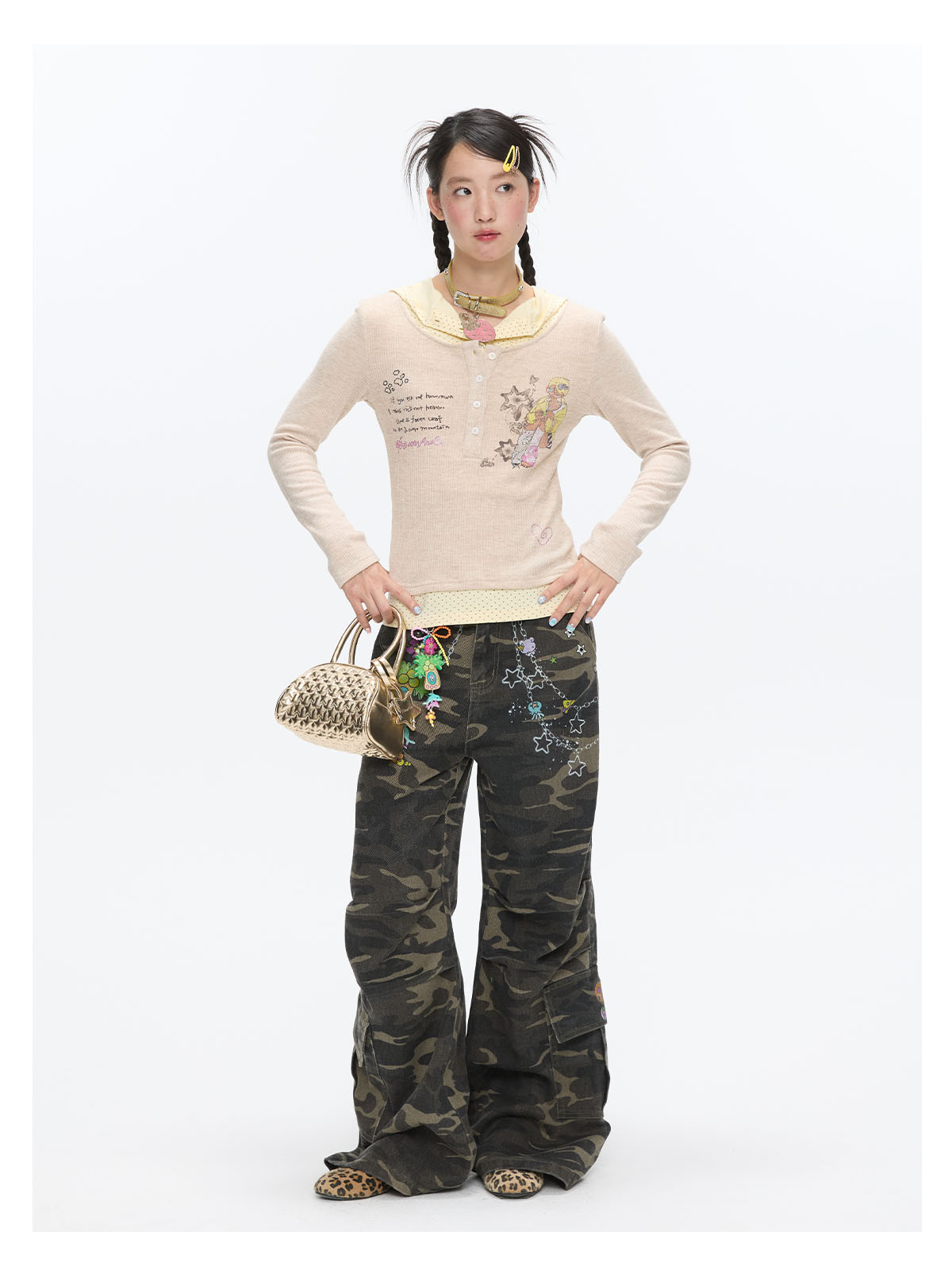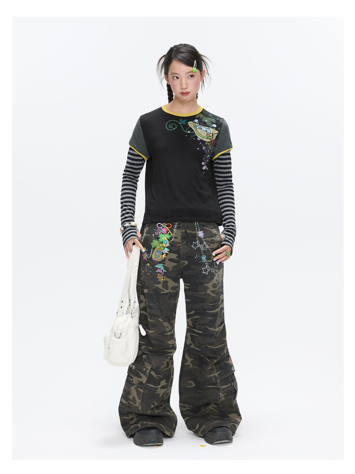 Vintage camouflage cargo pants with straight leg design Lookbook
