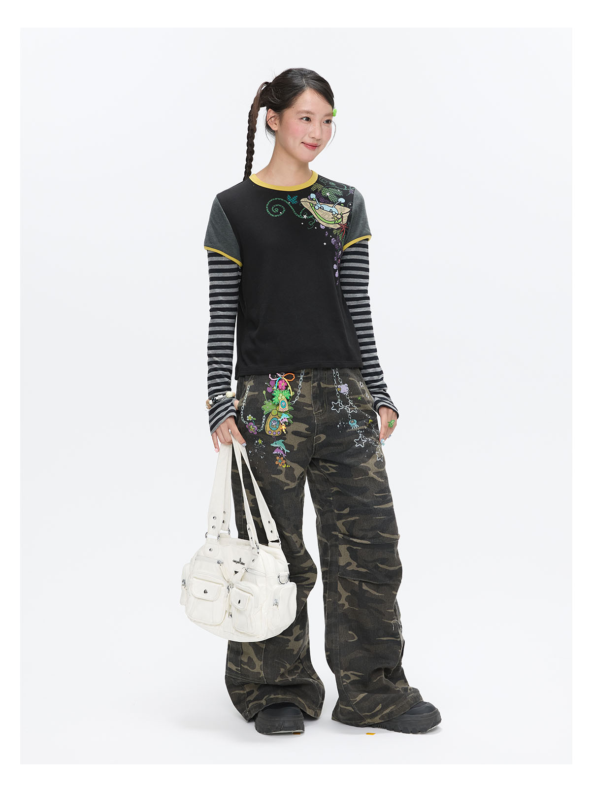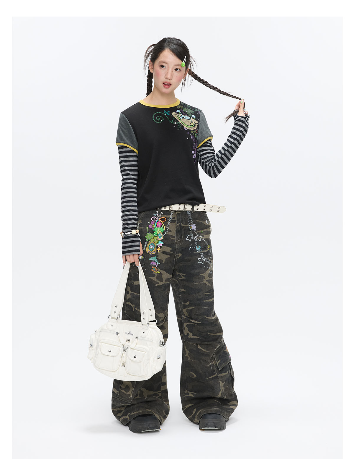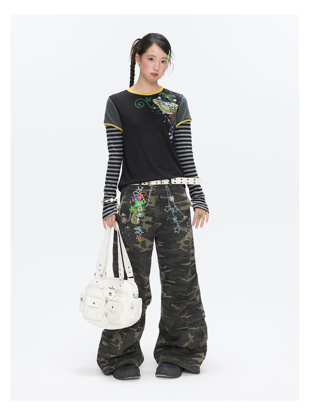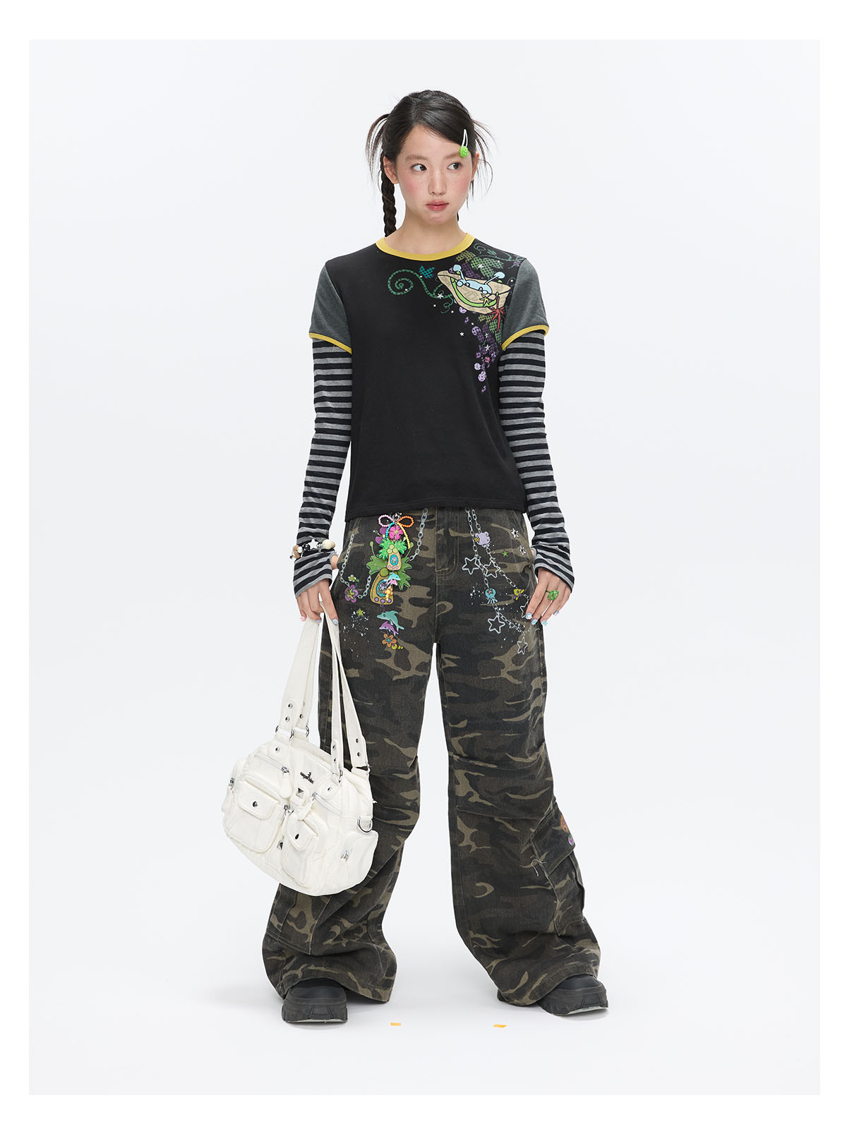Vintage camouflage cargo pants with straight leg design Lookbook