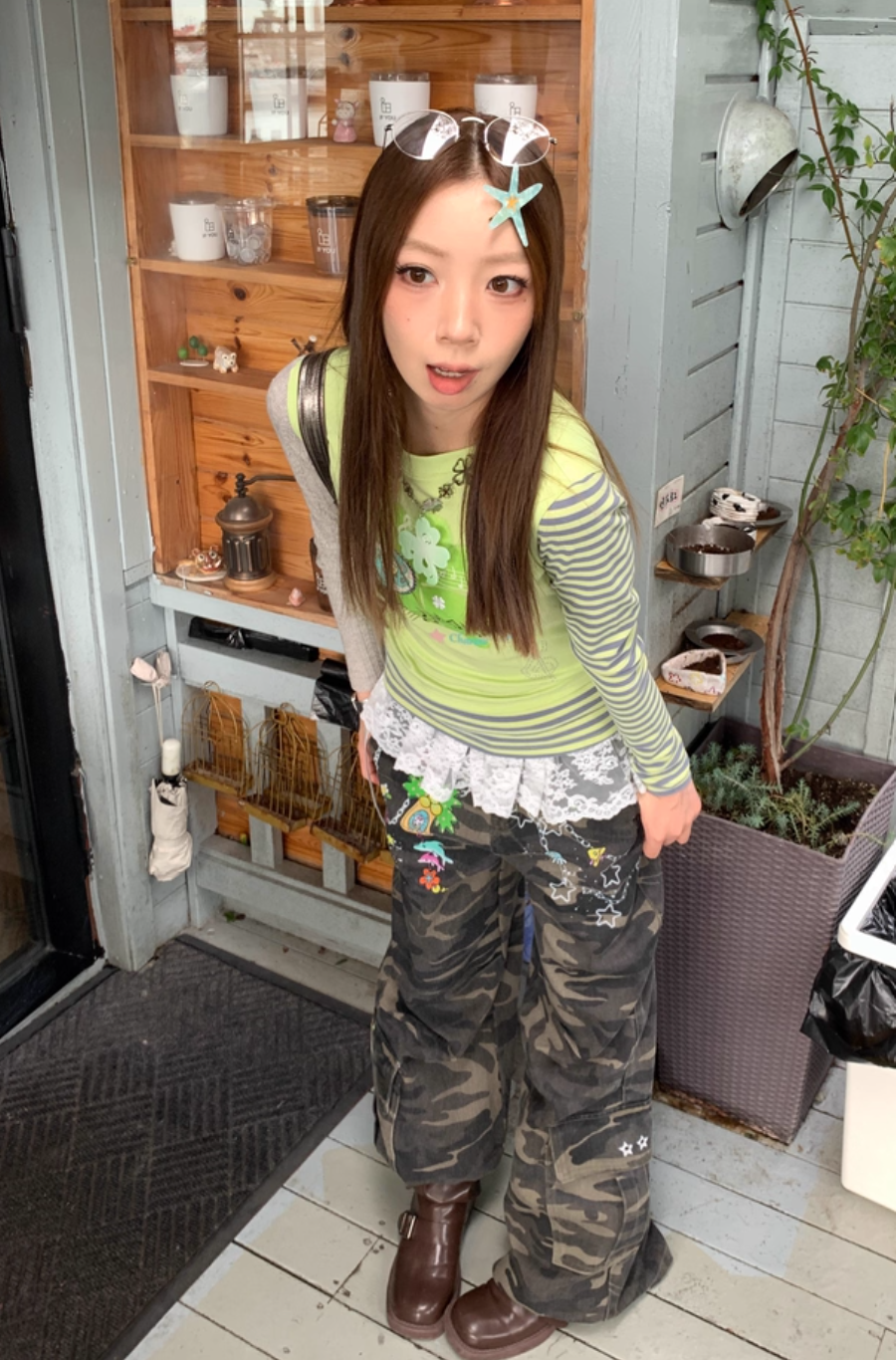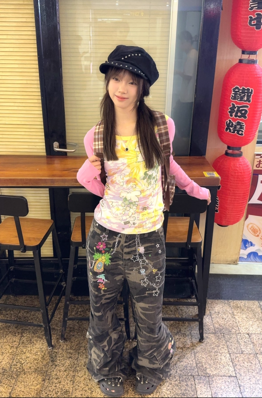 Vintage camouflage cargo pants with straight leg design Lookbook