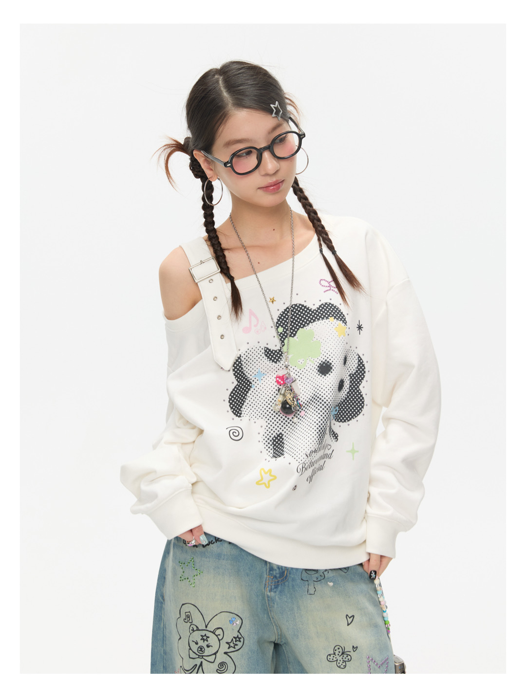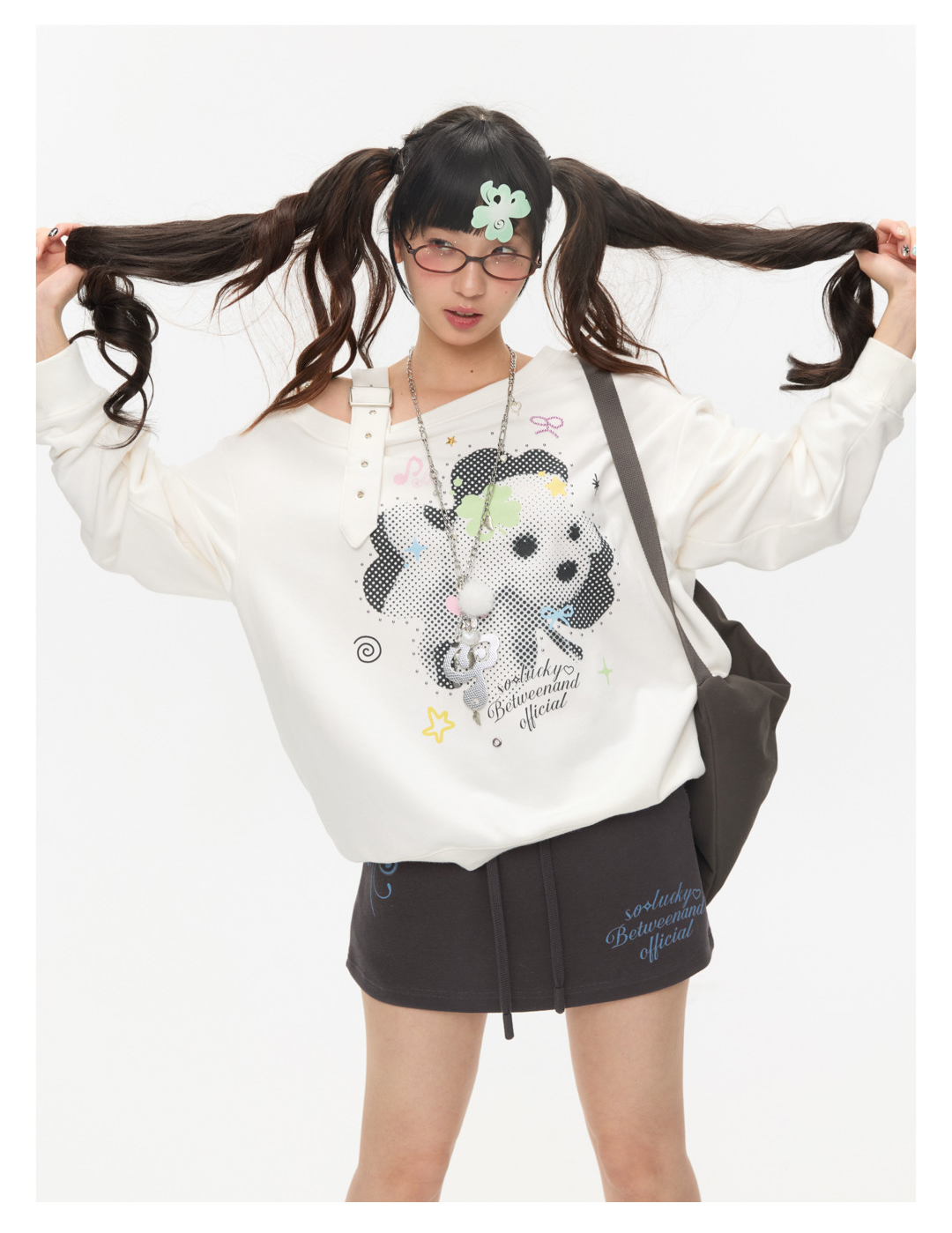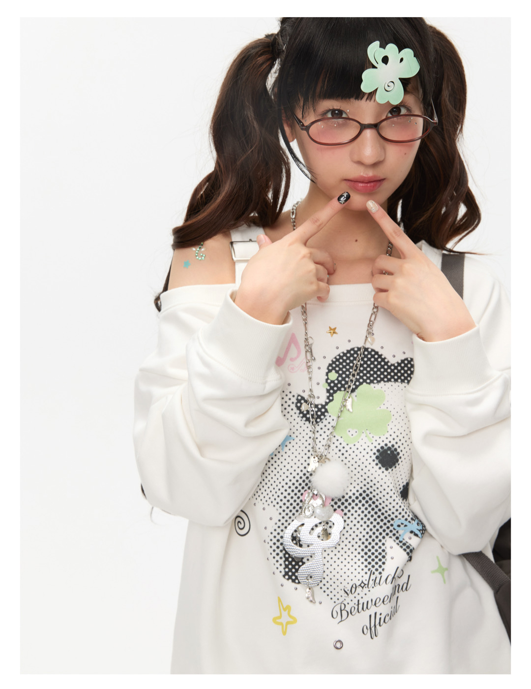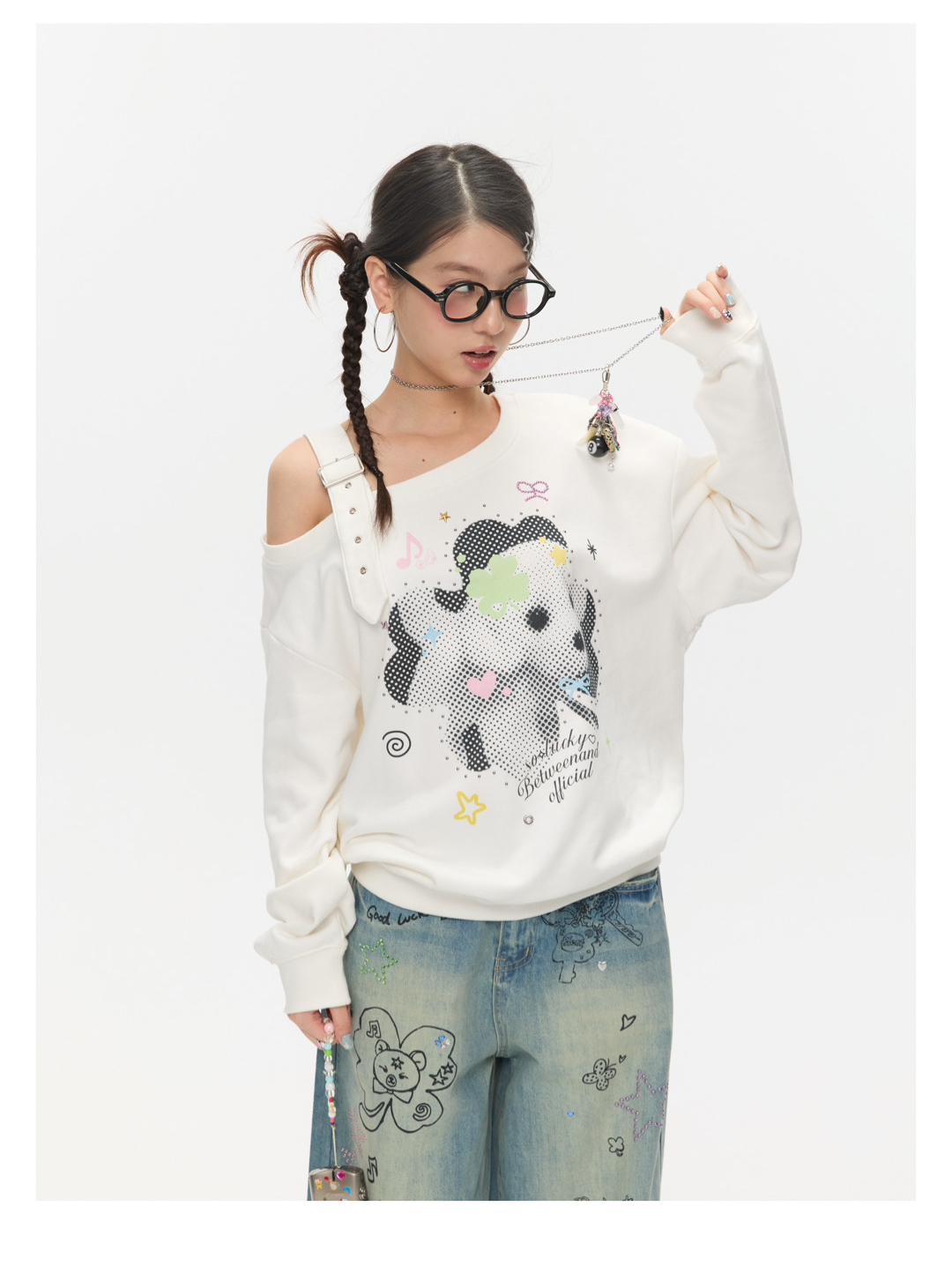 White clover dog off shoulder hoodie with adjustable strap design Lookbook