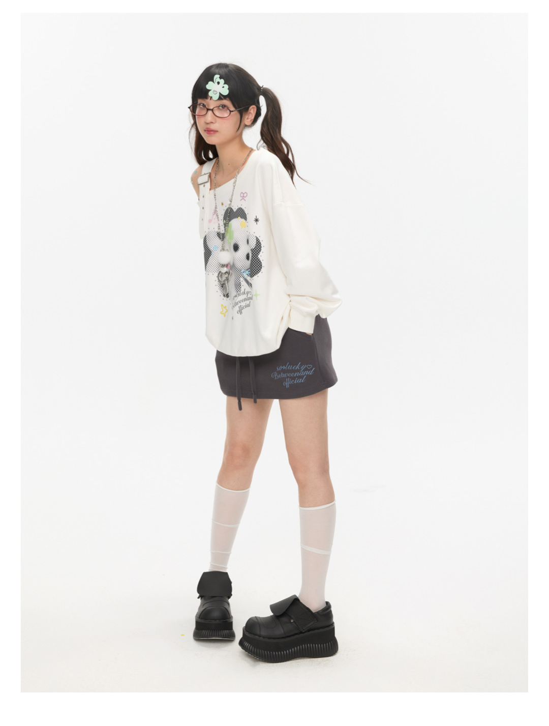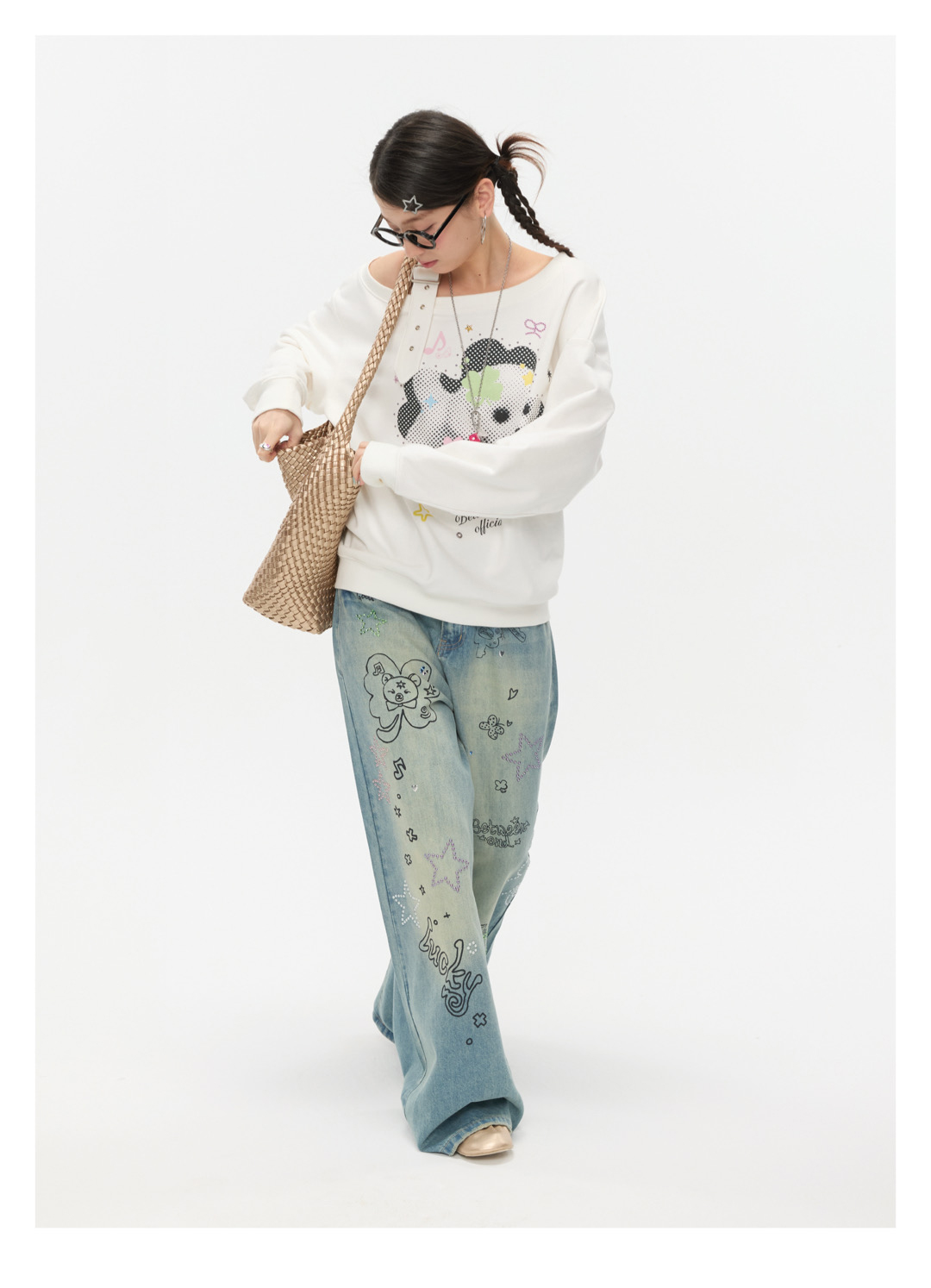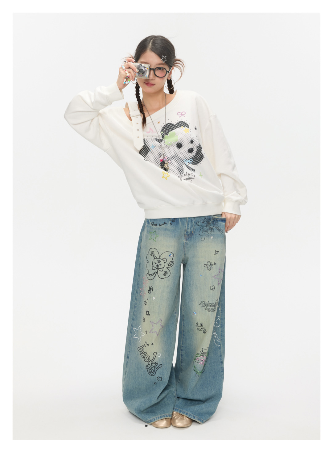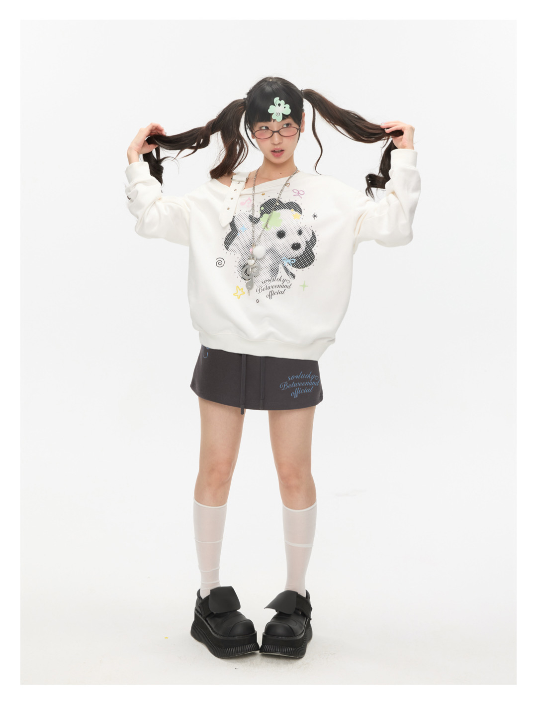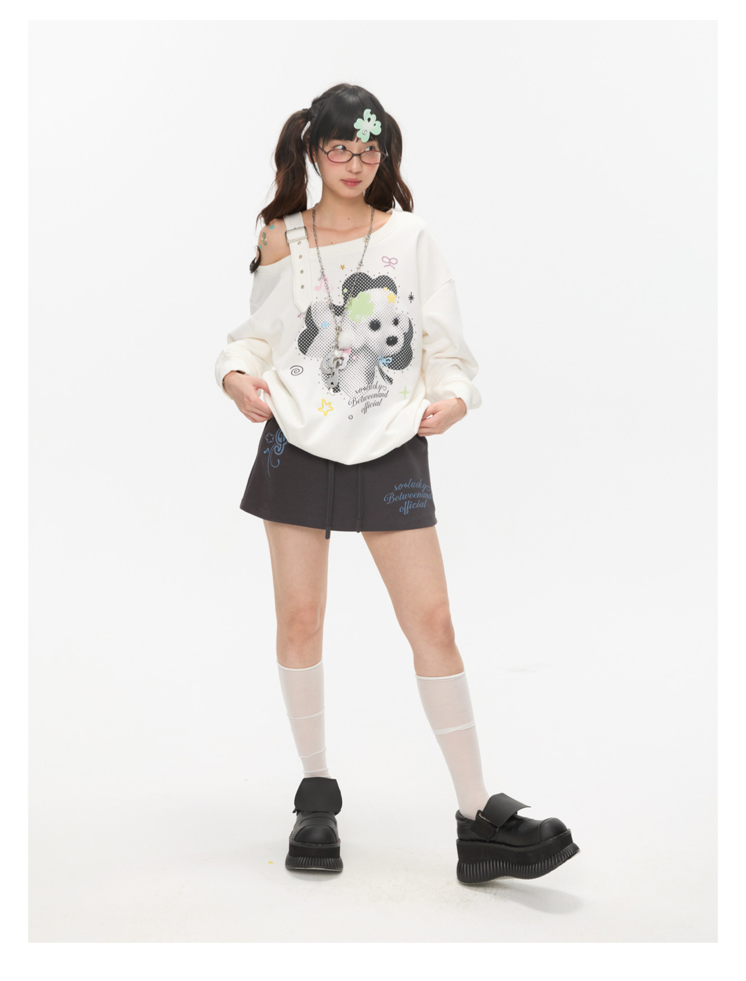 White clover dog off shoulder hoodie with adjustable strap design Lookbook