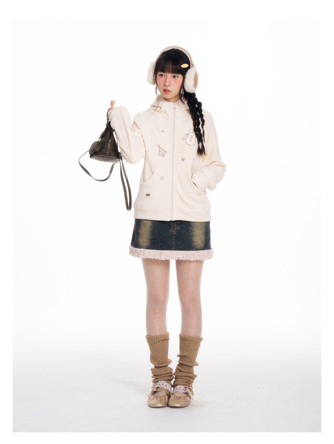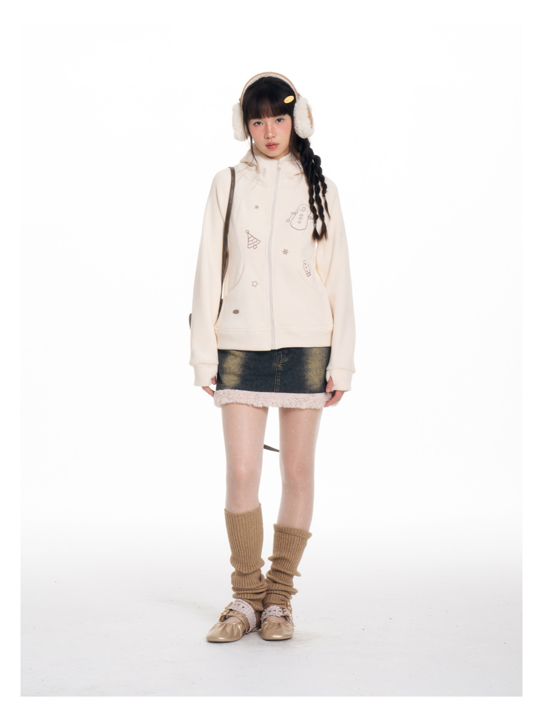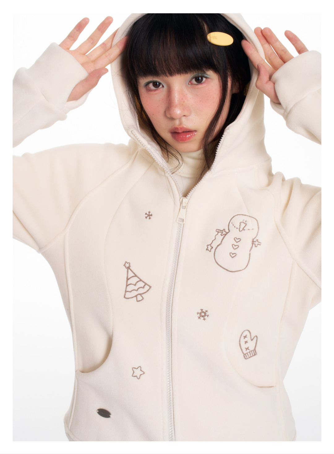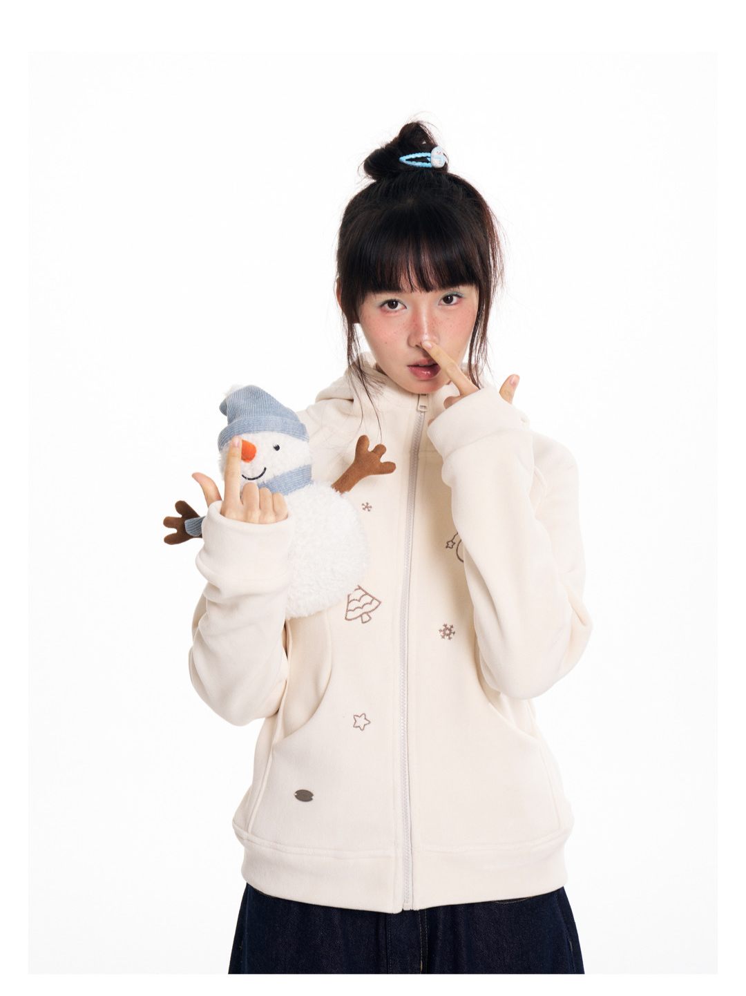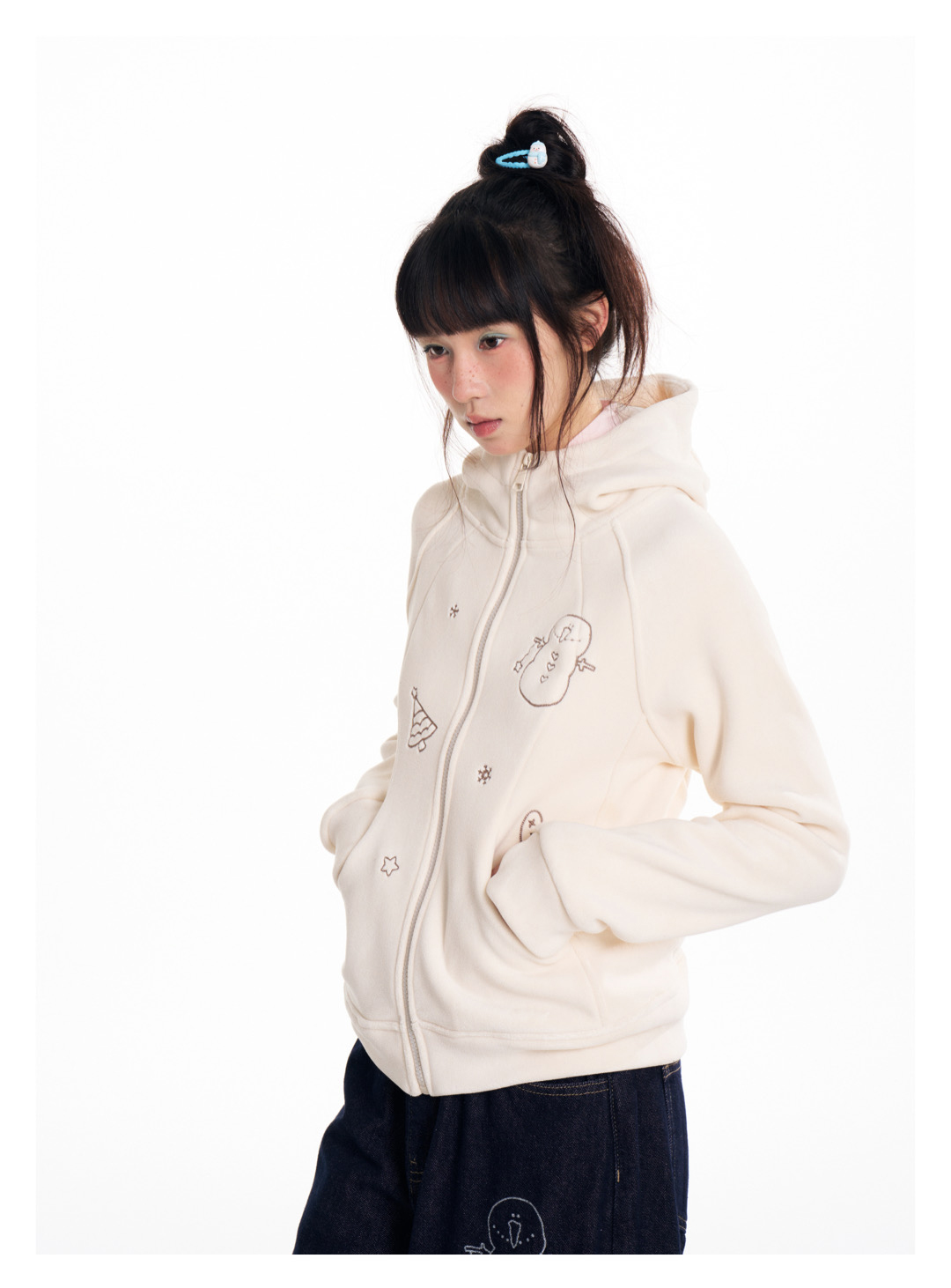 White fleece hoodie with snowman design and windproof fabric Lookbook
