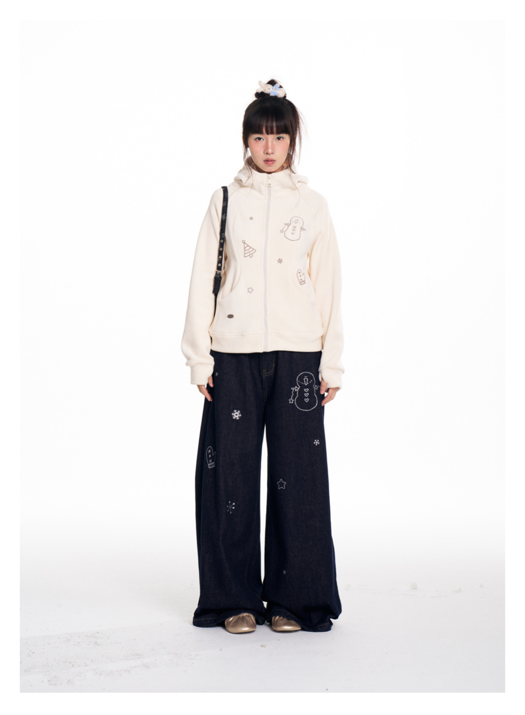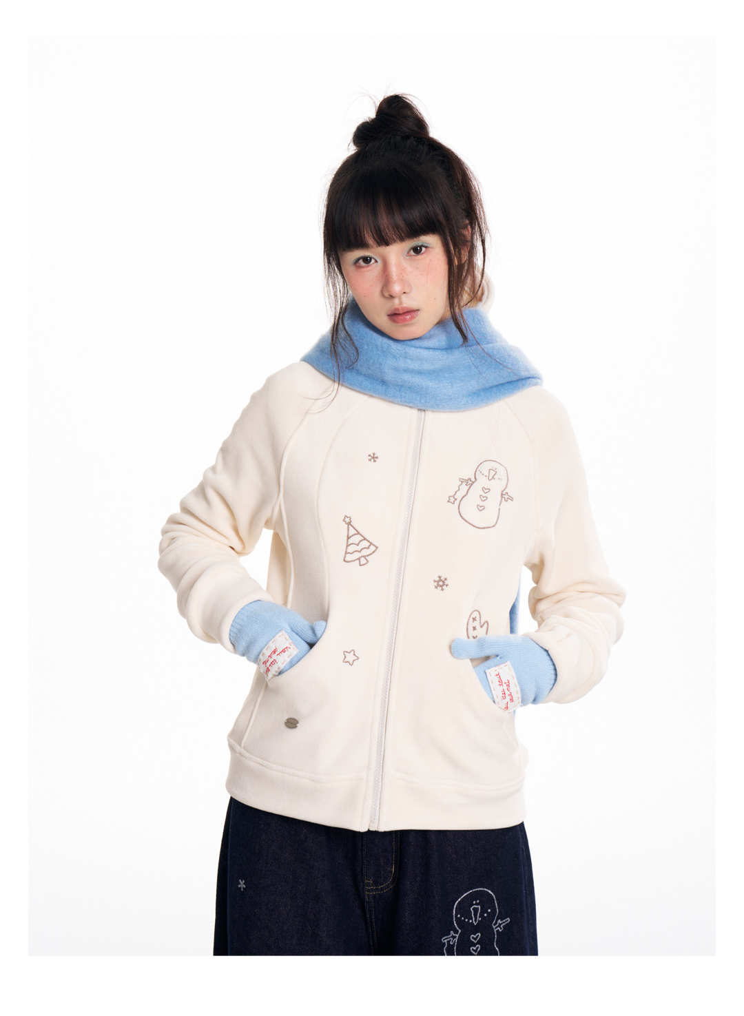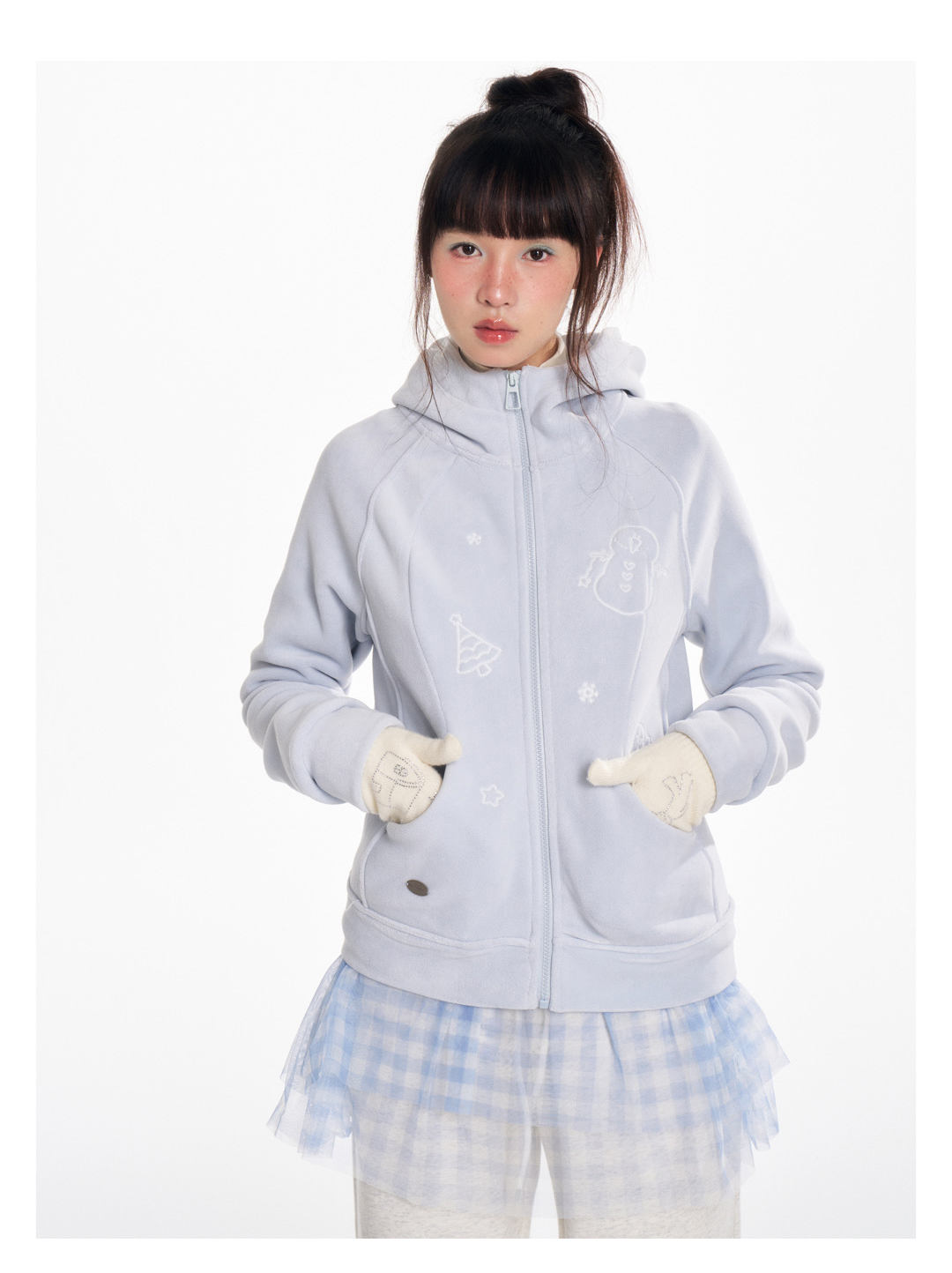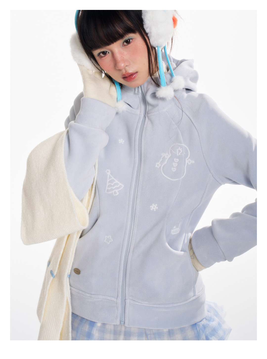 White fleece hoodie with snowman design and windproof fabric Lookbook