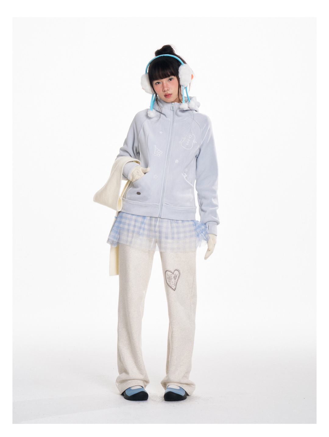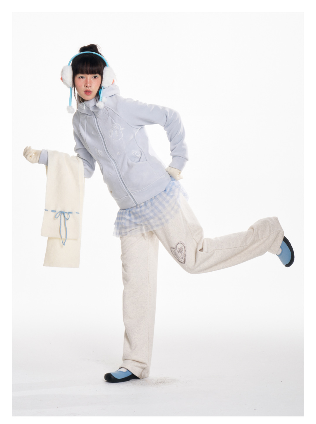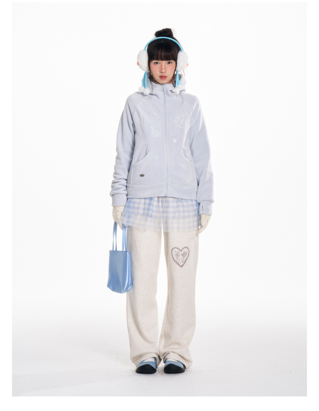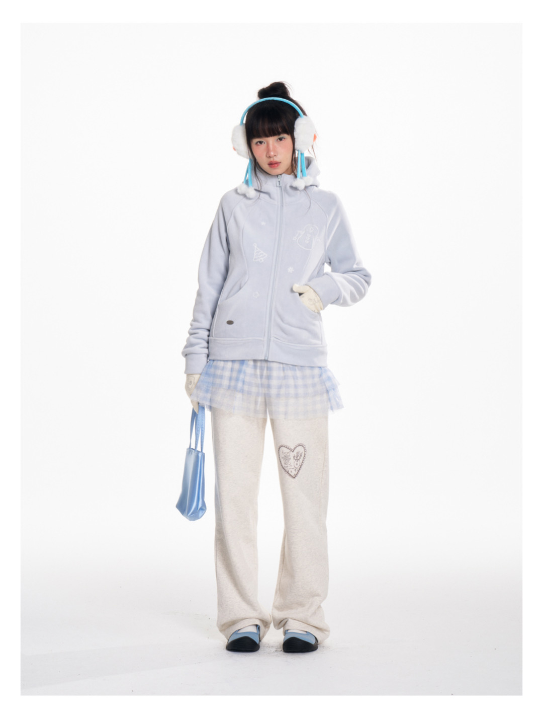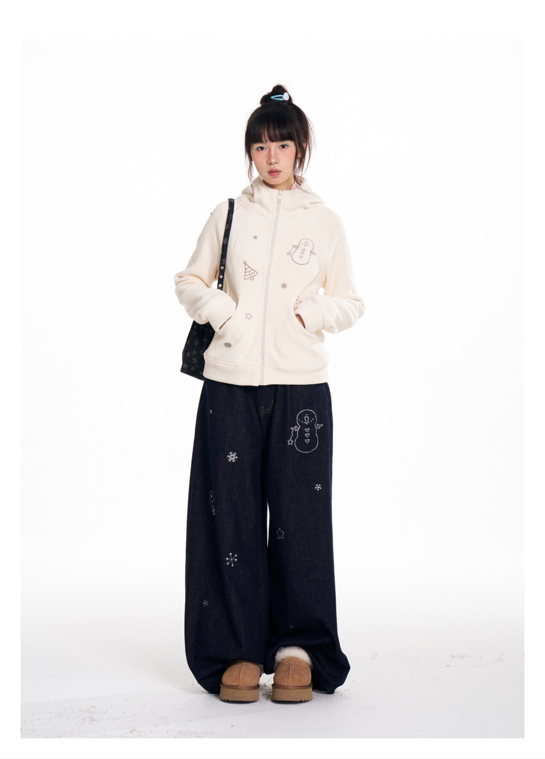 White fleece hoodie with snowman design and windproof fabric Lookbook